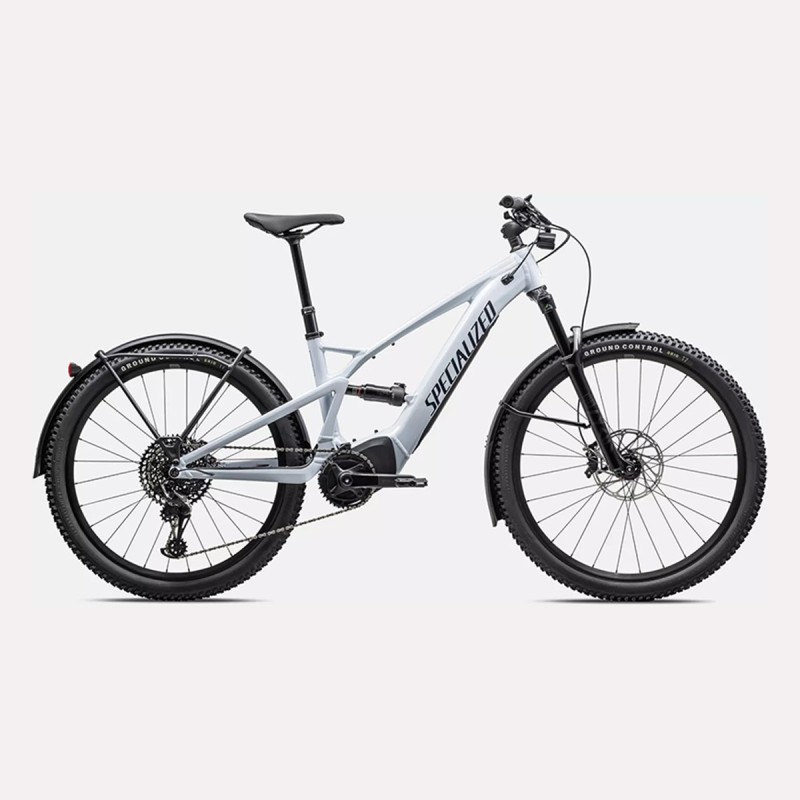 Turbo Tero X 6.0, de couleur blanc, de marque Specialized, typé enduro. Ce Vélo tout terrain  est le genre de vélo qui lisse les montées les plus abruptes et les plus défoncées.